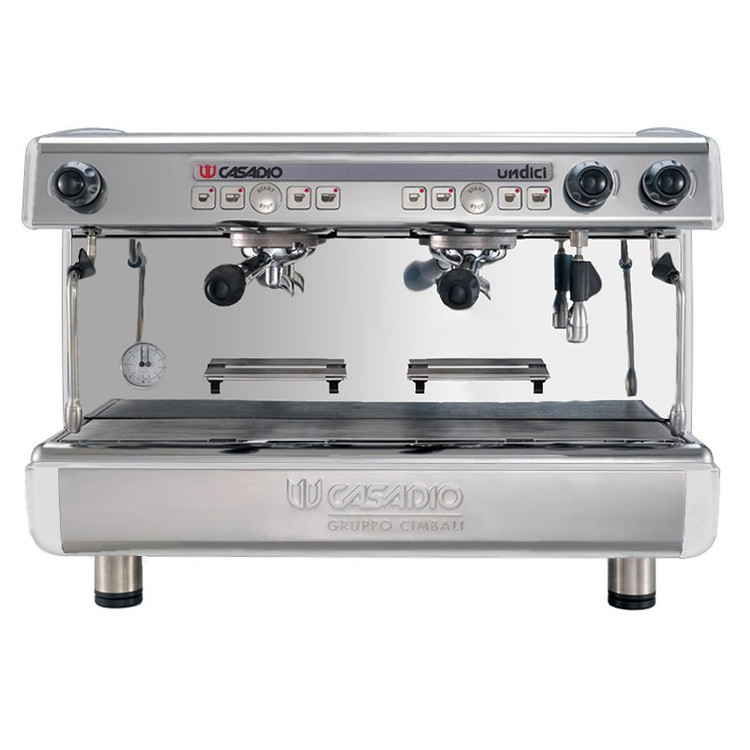 دستگاه اسپرسو کاسادیو مدل UNDICI A2 دارای دو گروپ، دو استیم وند چرخشی و یک خروجی آب جوش است و با داشتن 4 دکمه فشاری مجزا برای هر گروپ، امکان برنامهریزی برای دوزهای متفاوت قهوه و تهیه نوشیدنیهای متنوع فراهم شده است. بدنه این اسپرسوساز نیز به منظور تضمین استحکام و کیفیت، از استیل ضدزنگ و آلومینیوم ساخته شده و نور LED بهکاررفته در صفحهکلید این دستگاه نه تنها به زیبایی و جذابیت آن افزوده؛ بلکه کار با آن را در محیطی با نور کم نیز امکانپذیر و آسان ساخته است.
